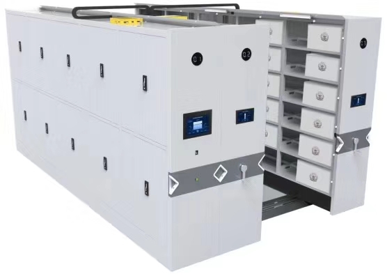 每列裝有制動(dòng)裝置,磁性密封條,操作方便,制動(dòng)可靠,適用存取安全 |
